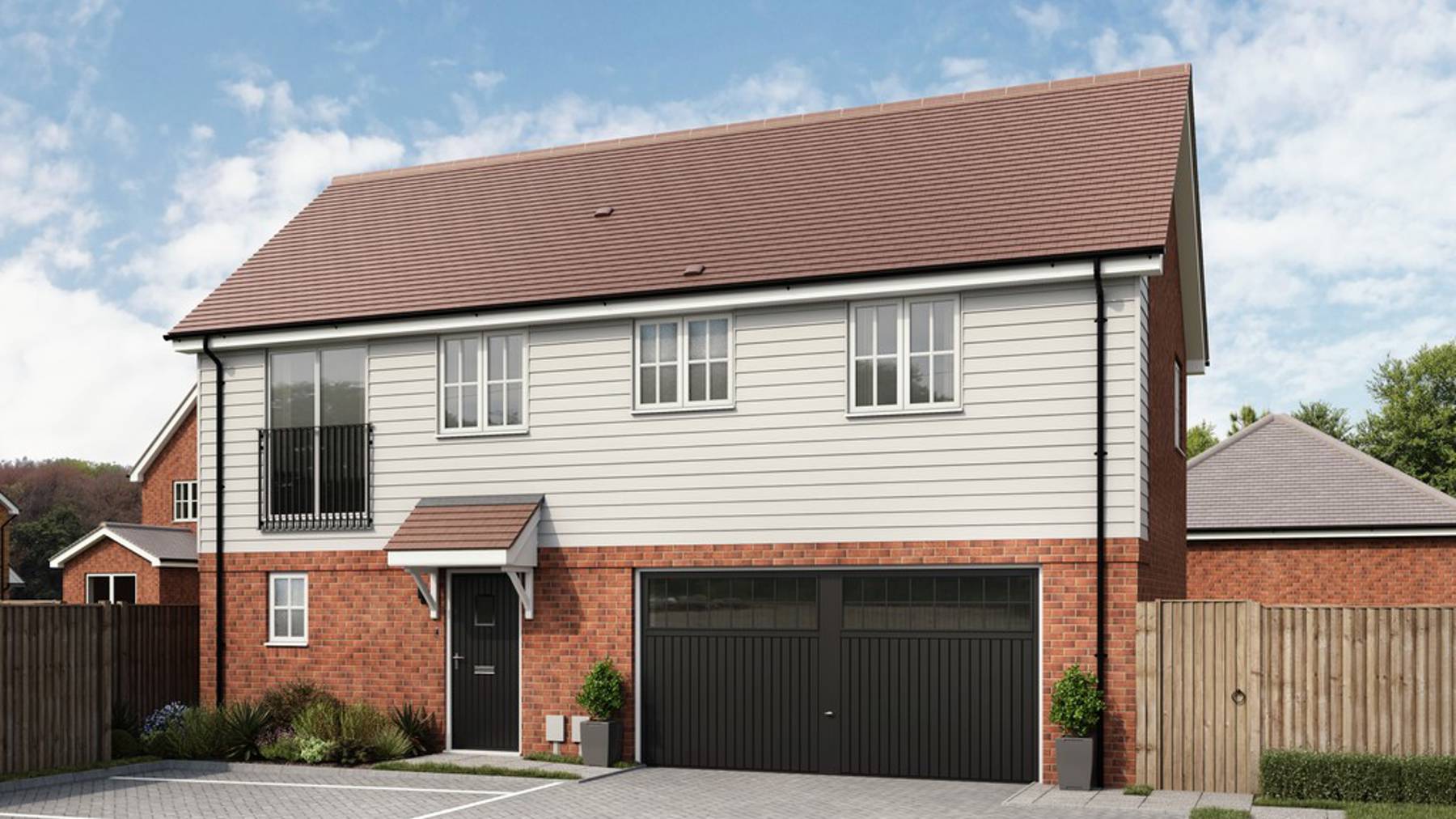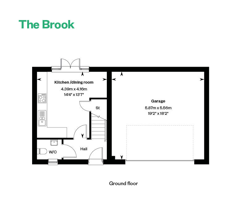 Designed for stylish, low-maintenance living, The Brook is a unique 2-bedroom detached coach house that offers comfort and character in a compact footprint. The kitchen-dining room opens out to the garden via French doors, creating a bright and sociable space for everyday meals and entertaining. A downstairs WC adds convenience.
