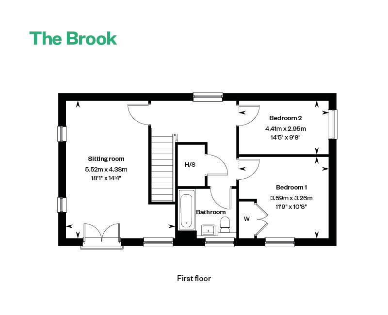 Upstairs, the large sitting room with Juliet balcony provides a peaceful retreat filled with natural light. Bedroom one includes a built-in wardrobe, while both bedrooms are served by a well-appointed family bathroom, making The Brook an ideal choice for first-time buyers, professionals, or those looking to downsize without compromise.