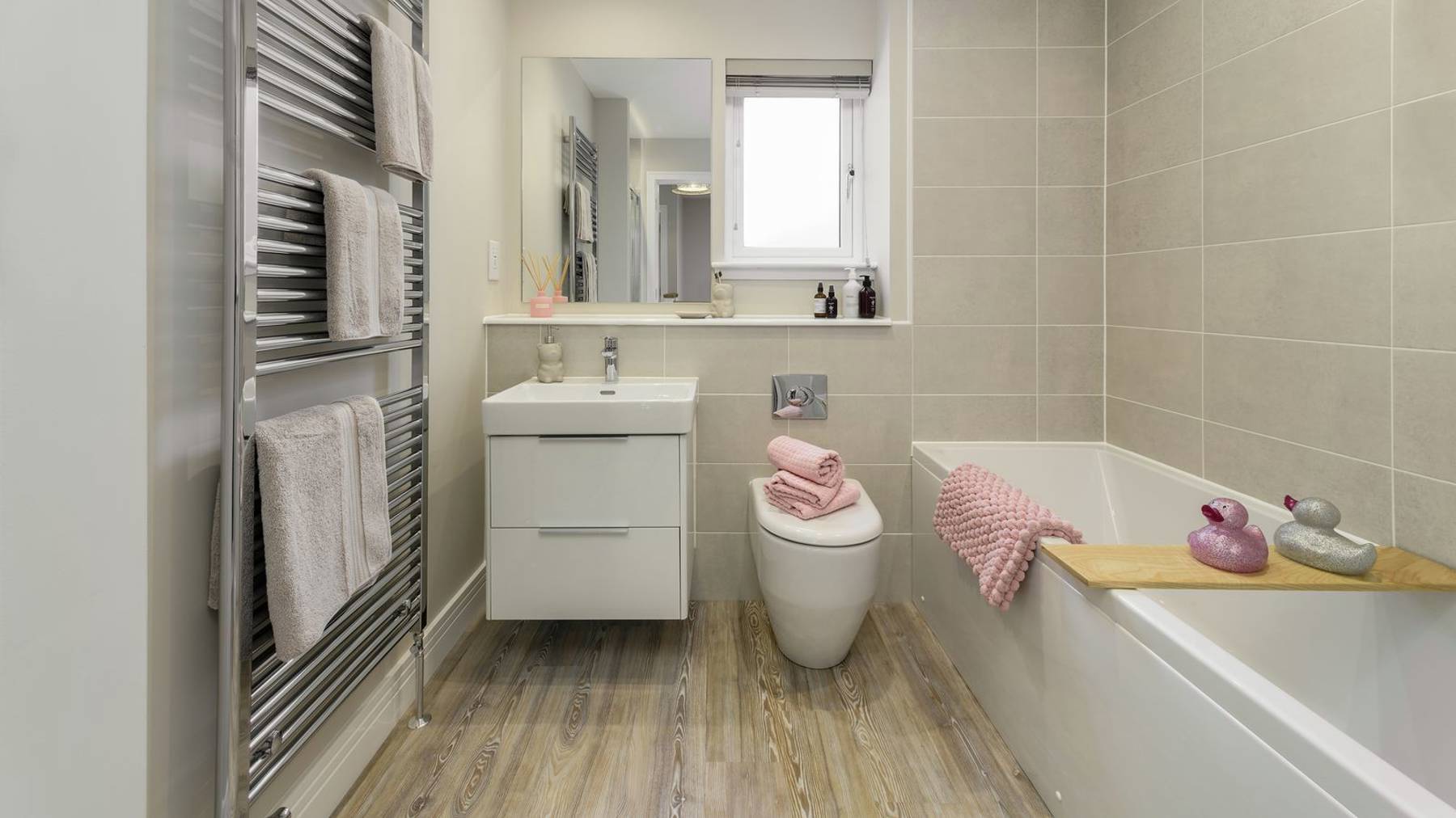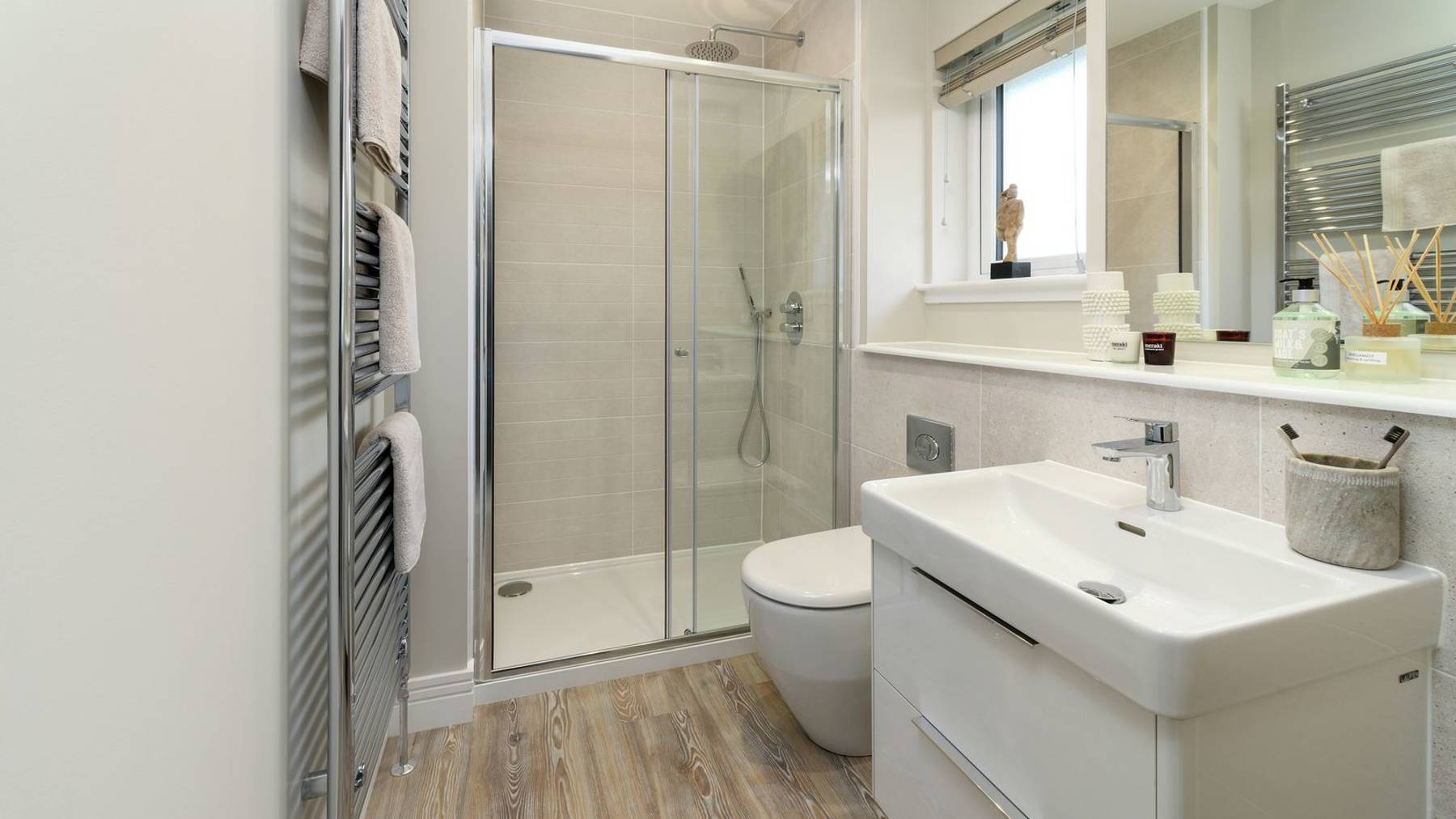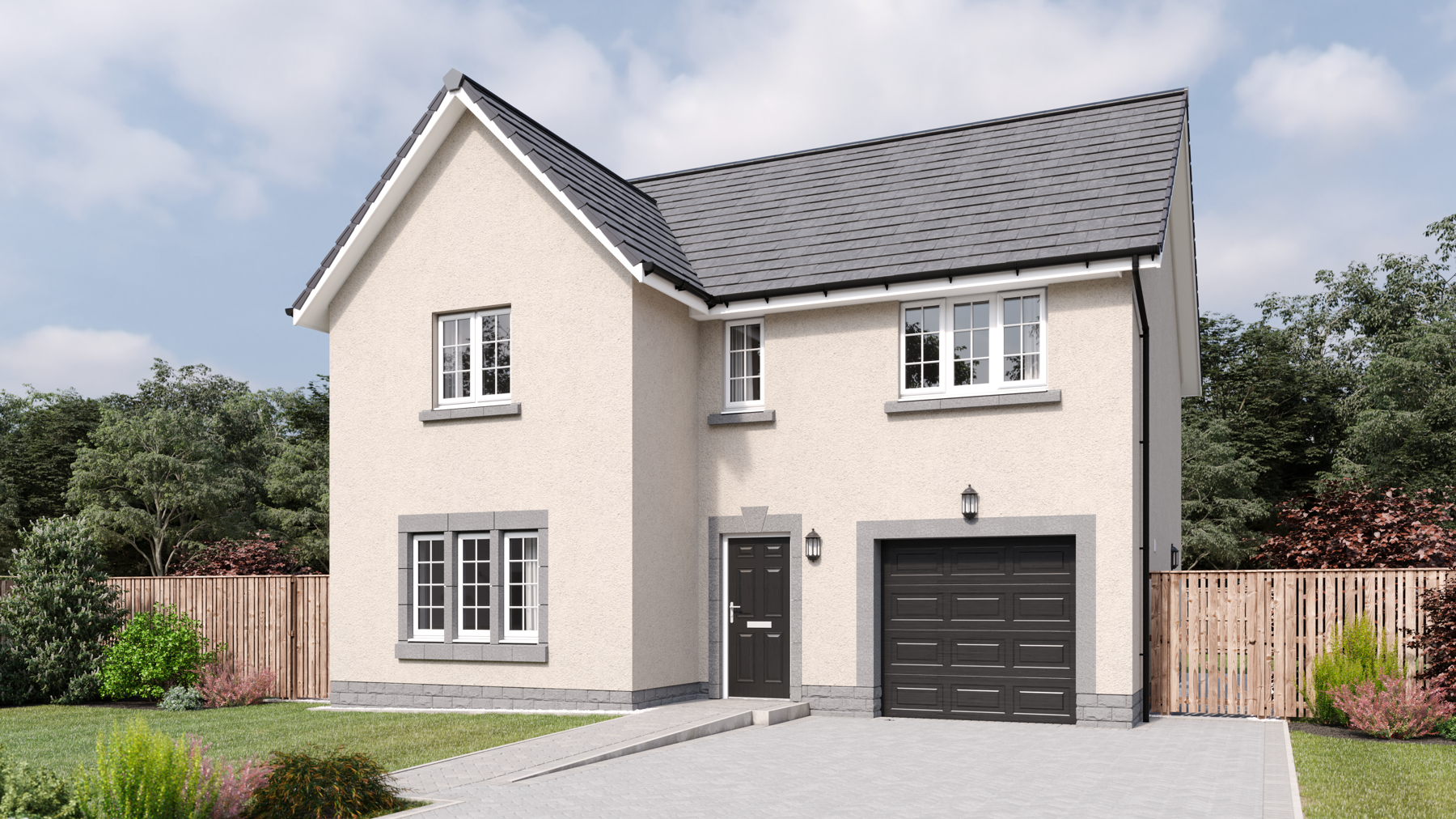 The Barrie is a spacious, four bedroom family home with an integrated single garage. The ground floor boasts a bright and spacious open-plan kitchen and family area which flows through double French doors to decking and the rear garden beyond. There is also a useful, separate utility room and a generously sized, formal lounge. Upstairs, the home boasts 4 bedrooms, all with integrated storage, leading off from the galleried landing. The main bedroom has the added benefit of an en suite shower room. There is also a well equipped family bathroom and a convenient linen closet.