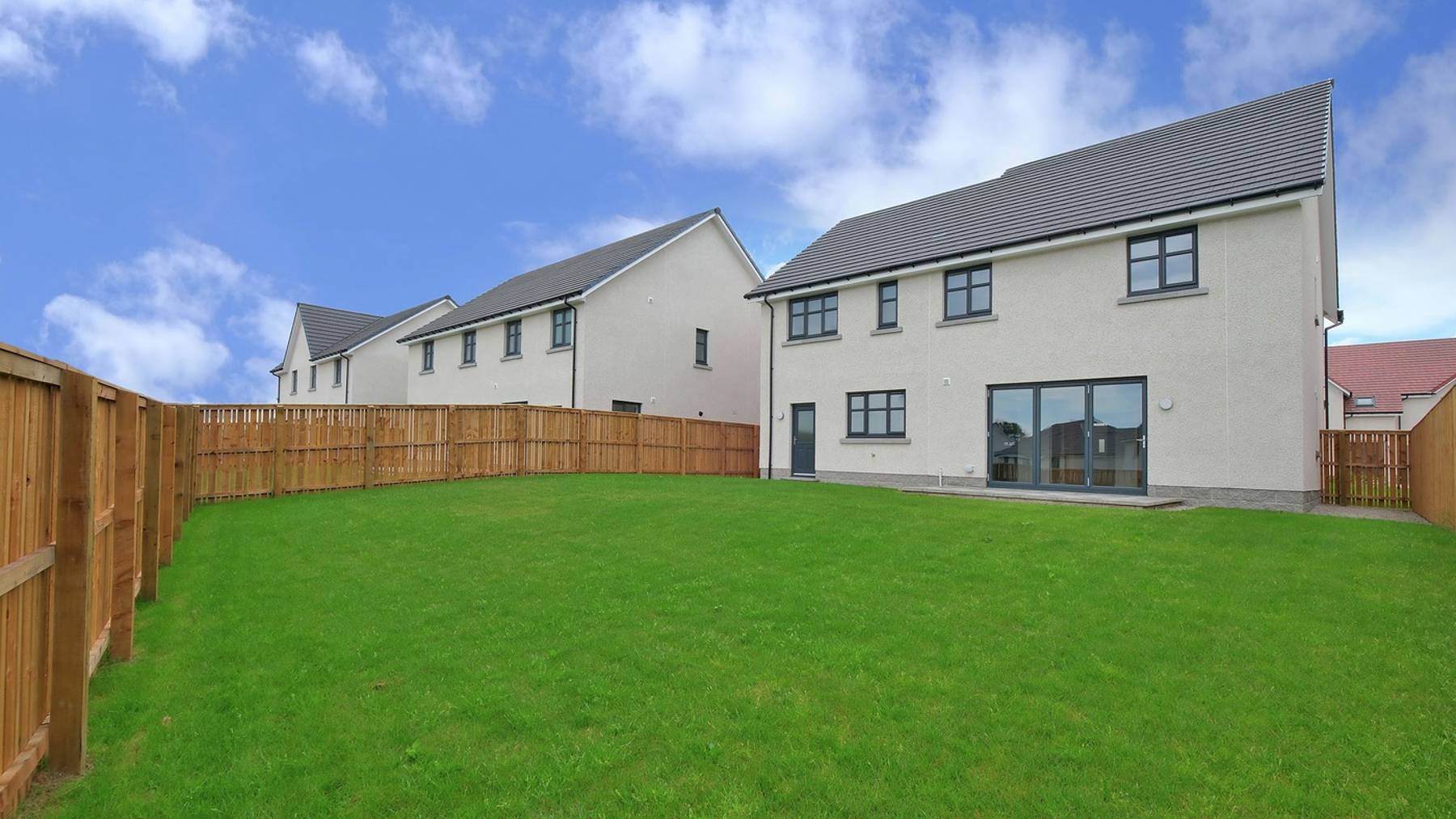 Comprising five spacious bedrooms, two with an en suite, The Garvie has been designed for flexible family luxury. From the spacious hallway, a formal lounge and the open plan kitchen/family/dining area are both accessed via double doors. Upstairs are four elegant bedrooms, two of which are en suite, along with a four-piece family bathroom. A fifth bedroom could also be used as a private study for home working.