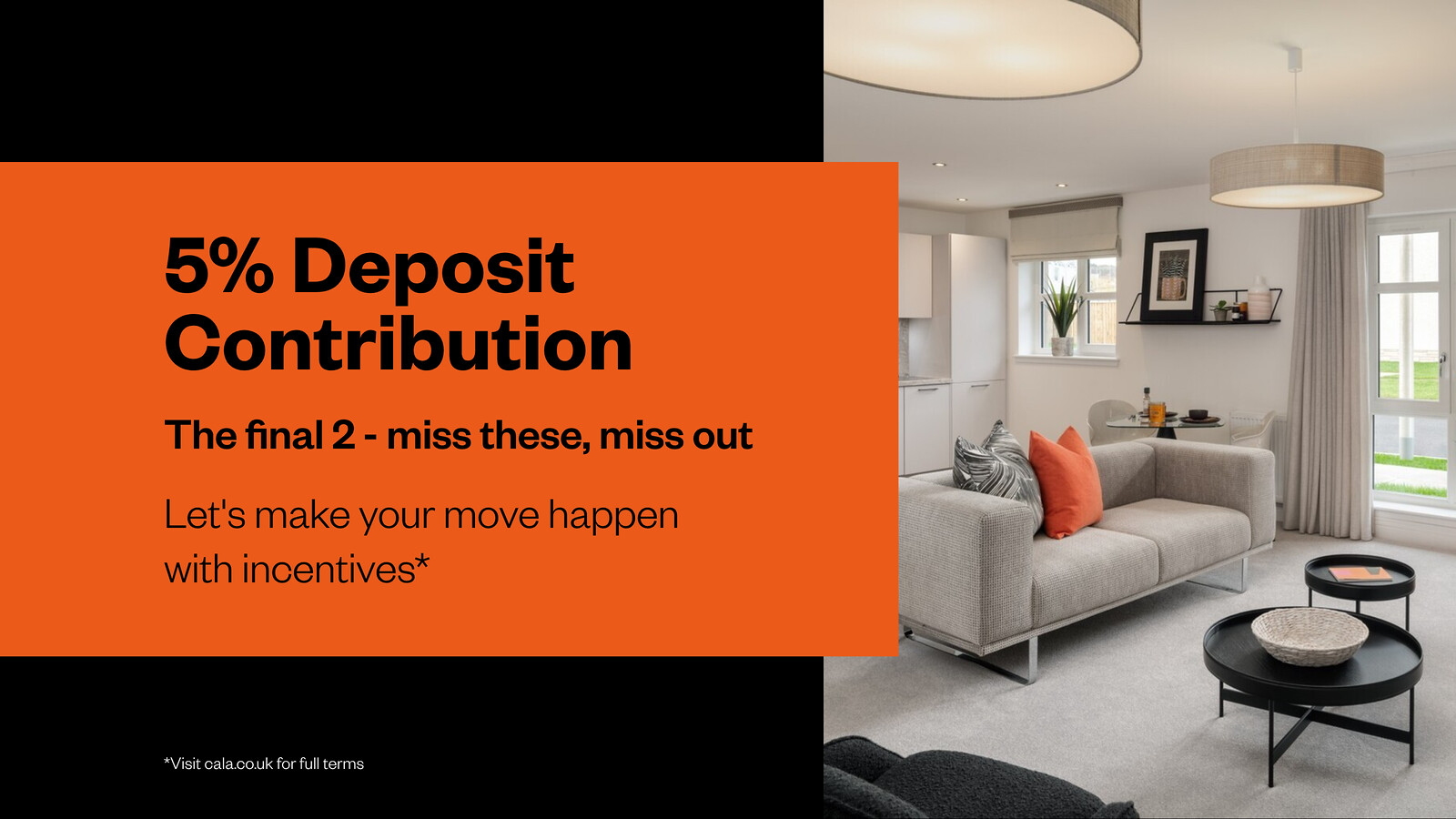 We’re making your move easier with tailored incentives on selected plots — including £8,250 deposit contribution available*, plus flooring, and a curtains and blinds package. Book an appointment or speak to our sales team today to find out more and make your dream move a reality.