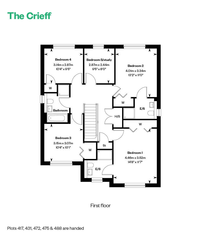 Four double bedrooms, two with en suite, plus a study/fifth bedroom makes The Crieff a family home with room to grow. The four larger bedrooms feature fitted wardrobes, and upstairs is completed by a luxurious family bathroom. Downstairs, the spacious, L-shaped entrance hall gives access to the formal lounge and a large open plan kitchen and family/dining room. A downstairs cloakroom, ample storage, utility room and integral garage cater for all practicalities.