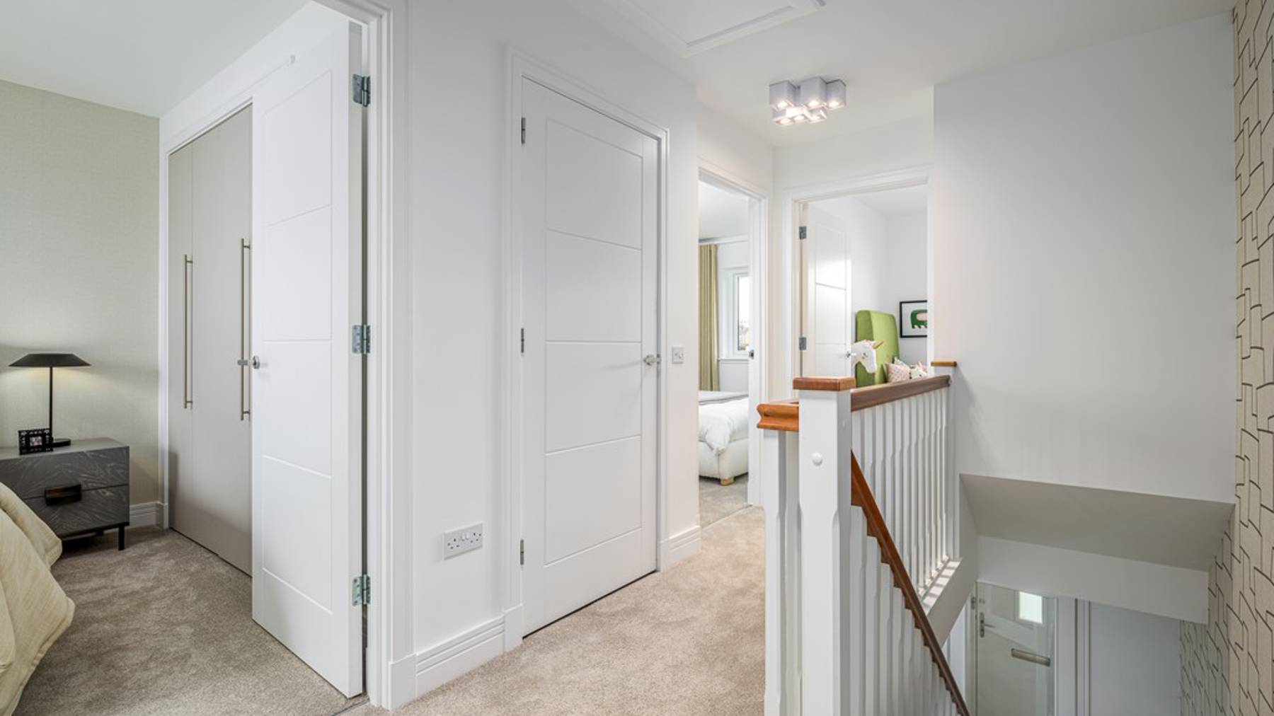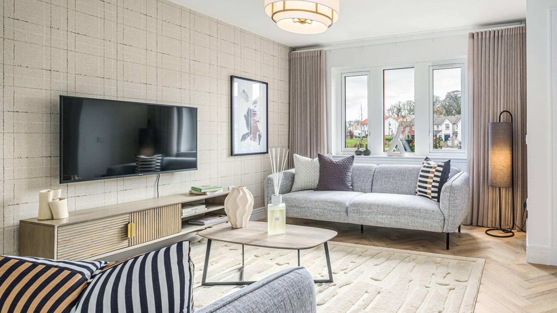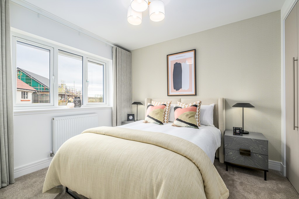 Downstairs you also enjoy a separate (yet interconnecting) lounge, downstairs WC, excellent storage and welcoming vestibule, while on the first floor you’ll be greeted by a spacious upper landing, off which find two double bedrooms and a single (perfect as a home office, nursery or hobby room), all enjoying fitted wardrobes. The Allan’s light and airy ambience is complemented with a high specification family bathroom.