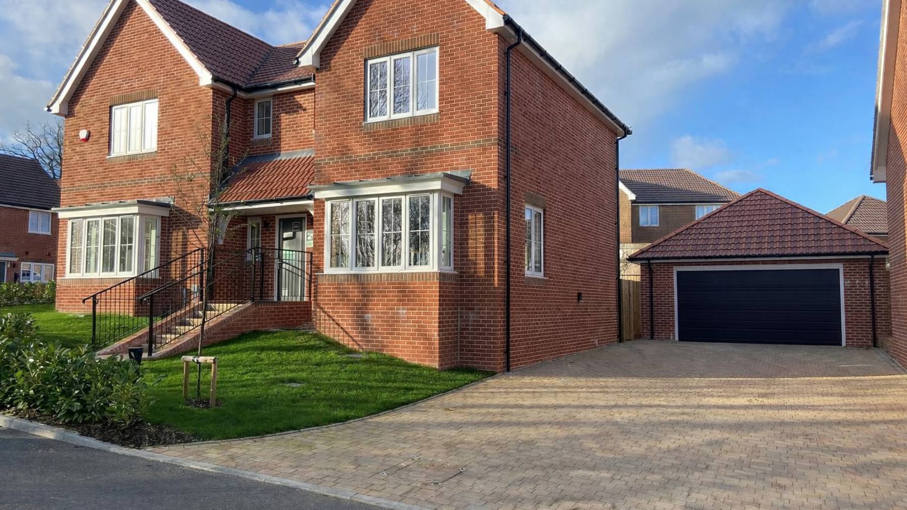 Outside is parking and an EV charging point.