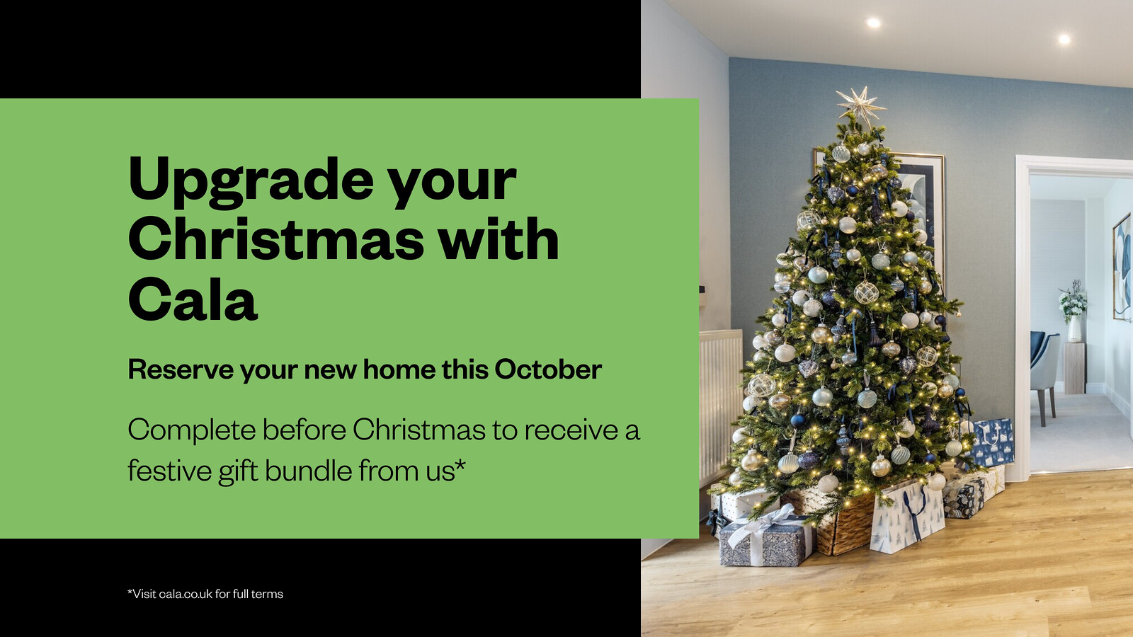 Reserve your new home in October and complete your purchase before Christmas, and we’ll treat you to a handpicked selection of festive items from us, including a Samsung 65' TV, Fortnum & Mason Hamper and Le Creuset homeware. Whether you're decking the halls or hosting loved ones, your new home will be the perfect place to celebrate. Don't miss out - contact us today to arrange your appointment.