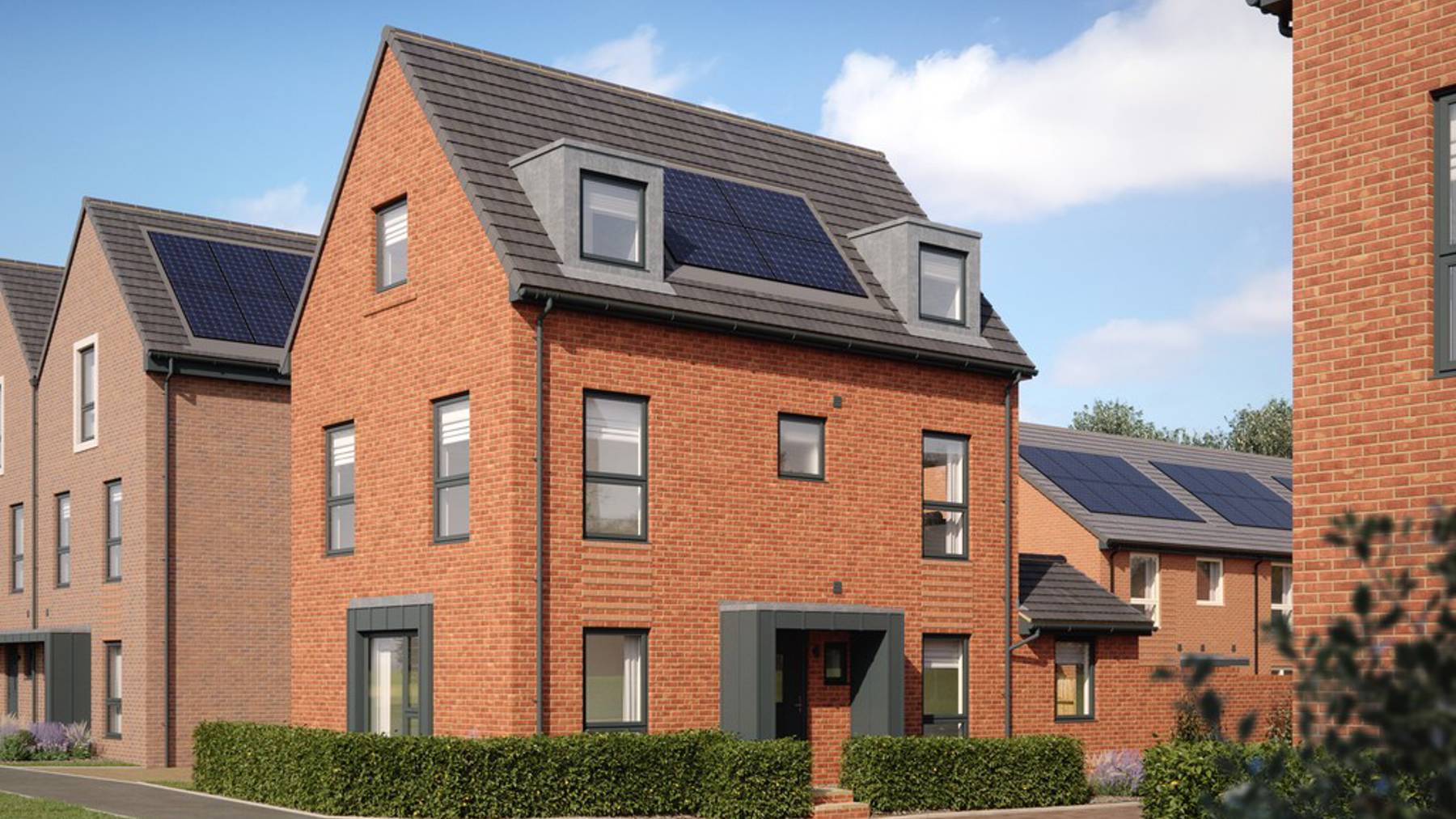 These homes are thoughtfully designed with energy efficiency, comfort and superior specifications in mind with integrated appliances, amtico flooring, fitted wardrobes, ample storage, solar PV panels, air source heat pumps, electric vehicle chargers, and turfed rear gardens. Helping you reduce your carbon footprint and utility bills.