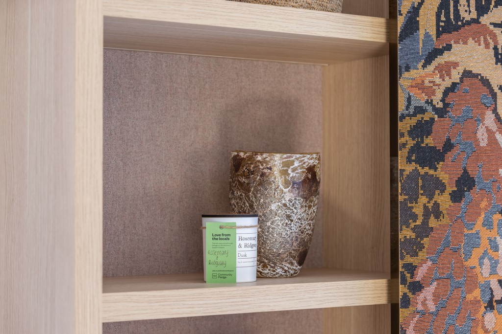 As you enter the showhome, welcoming scents fill the home thanks to a delightful reed diffuser from Wax Botanix, alongside eco-conscious candles from Rosemary and Ridgeway and natural soy soaps from Green Laurels.